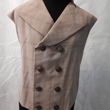 Double breasted waistcoats were the most popular style during the first few decades of the eighteenth century and featured pockets with flaps. The length continued to shorten and by 1790 they were cut square to the waist.